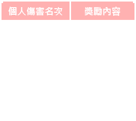 活動結束後,陣營傷害排行最高,全陣營發放紅利點數100 點;個人傷害排行前五名,發放樂豆點數,獎勵內容如下表。
